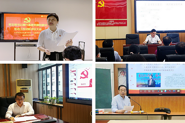 考核会上,高一党支部书记楚天舒、高二党支部书记李旺红、高三党支部书记杨新国及行政党支部书记王星等,就个人在2019-2020学年度履行党建和意识形态工作情况,分别向学校党委及所在支部党员进行了述职。书记们从贯彻执行党组织决策部署、支部“五化”建设、落实“三会一课”、意识形态等方面阐述了支部工作的具体做法及成效,既分析了存在的问题与不足,也对今后工作做出了规划。