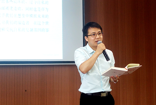 “也无风雨也无晴”、“人间有味是清欢”。罗荫老师以苏轼及其作品为例,向大家分享了传统文化中的精神力量。她说,苏轼的时代固然过去,但是他的精神力量在当今还有重大意义。比如,对待生活的旷达,热爱生活的诗意,用心生活的情怀。“敬上一杯茶,你是一个陌生人;再奉第二杯,你是我们的朋友;第三杯茶,你是我的家人,我将用生命来?;つ恪保砗Q罄鲜琛度琛氛獗臼楦嫠呶颐牵浩椒踩说男靥爬锟梢蕴鸥按蟮男脑唷I砦淌?,我们通过教育将爱的种子播种到更多人的心中,我们可以通过言传身教让学生知晓什么是平凡人的伟大。满延威老师通过两种神奇的动物引出《自私的基因》,他说,“个体内的基因不是简单的随机组合,而是完美配合、各司其职,赋予生物各种特征,适应生存需要”、“一个生命,是众多基因完美配合产生的奇迹,独一无二”。他指出:学生存在差异是符合自然规律的,如果所有学生不存在任何差异,教育将只是枯燥无味的重复。正因为这种差异,教育才富有乐趣和挑战。邓李志老师在分享中强调了阅读的重要性,她认为,有甄别、有方法、有效率地阅读经典,才会成为我们教养的一部分;只有执起一把阅读经典的刻刀,才能雕刻出教育的宽度和厚度。