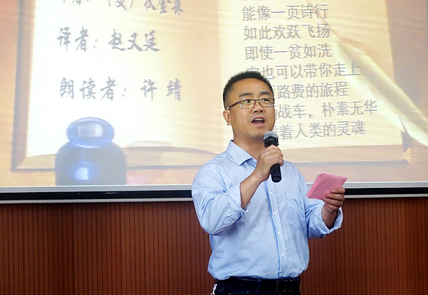 本次活动中,印道红、陈溪、王星、许靖四位党员老师作为朗读嘉宾,为各自的参赛选手精彩朗诵了推荐书目中的一段经典。他们感情充沛,声情并茂,时而慷慨激昂,时而娓娓道来,将一段段优美的文字演绎为一幅幅生动优美的画卷,让我们沉浸其中,领略到了经典的魅力。