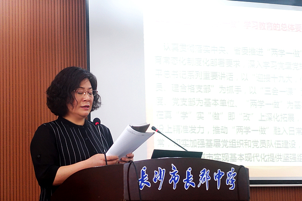 校党委杜慧书记就2017年全市“两学一做”学习教育的总体要求作动员讲话,她说,全体党员要认真贯彻落实中央、省委推进“两学一做”学习教育常态化制度化部署要求,深入学习党章党规、习近平总书记系列重要讲话,以“迎接十九大,做合格党员、建合格支部”为抓手,以“三会一课”为基本制度、党支部为基本单位、“两学一做”为基本内容,在真“学”实“做”即“改”上深化拓展,在制度建设上精准发力,推动“两学一做”融入日常、抓在经常,切实加强基层党组织和党员队伍建设,为长沙创建国家中心城市实现基本现代化提供坚强组织保证。