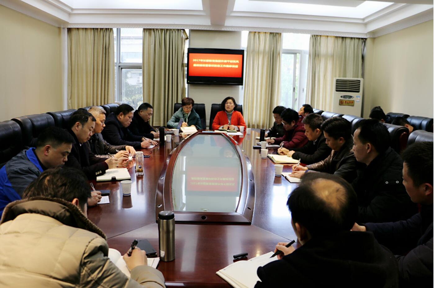 为强化集团各校党风廉政建设,切实做好意识形态工作。1月12日下午,长郡教育集团在长郡中学召开2017年集团外派干部党风廉政建设暨意识形态工作集体谈话会,集团管委会会长李素洁,集团管委会副会长杜慧、刘家建出席会议并组织谈话,集团20余名外派干部参与集体谈话。