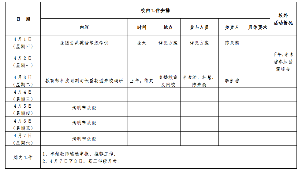 第五周工作安排表