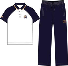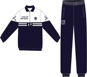 男女生:蓝圆领+灰长裤(1套) |