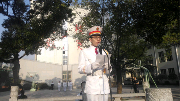 10月10日早上,老一届国旗班班长代表全体国旗班成员做国旗下讲话《向国旗敬礼——国旗班的青春担当》,号召大家在新长征路上肩负起心中“无形”的国旗,为实现少年梦、长郡梦、中国梦努力奋斗!同时,投票当天校园电子屏滚动播放《向国旗敬礼暨纪念红军长征胜利80周年》宣传片,通过画面和文字对全校师生进行爱国主义主题教育,这种爱国主义教育将始终贯穿于我校教育教学过程始终。