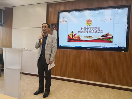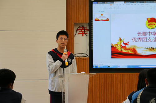 2019年4月17日,2019年上学期长郡中学年度优秀团支部评选在办公楼四楼会议室隆重举行,高二年级党支部书记杨新国老师,团委常锦老师作为评审出席,高一高二各班团支书作为大众评委参加会议并投票,团委纪检部谭睿同学主持会议。