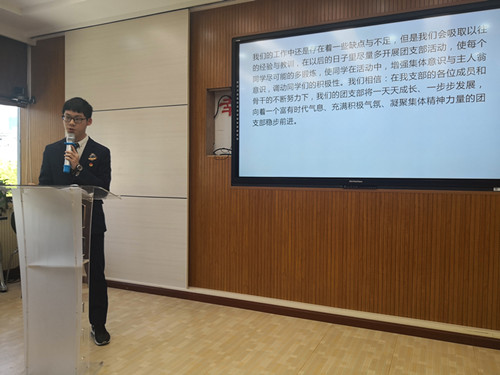 在评选活动中各班团支书充分展现了其团支部特色和风采。有的班主题鲜明,用一张张图片和真挚的语言打动了在场的观众。有的班以丰富多彩的班级活动,表达了对班级的热爱。
