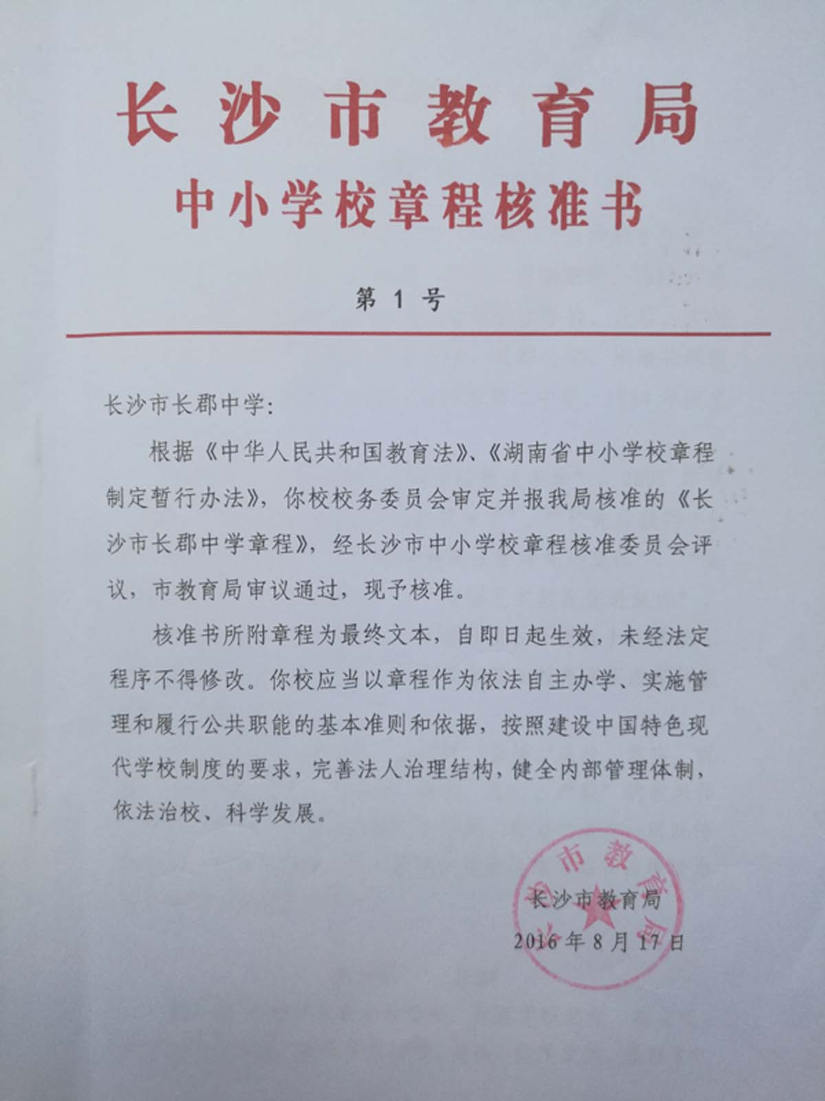 长郡中学章程
