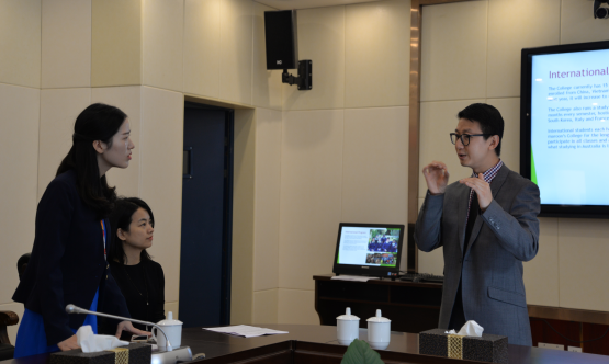 在交流会上,龚书记向远道而来的 Mr. Quang Le副校长一行表示热烈欢迎,并向来宾朋友介绍了我校的办学历程、办学理念、办学精神,以及多元化、国际化的办学特色,同时非常期待与圣马龙学校的合作。