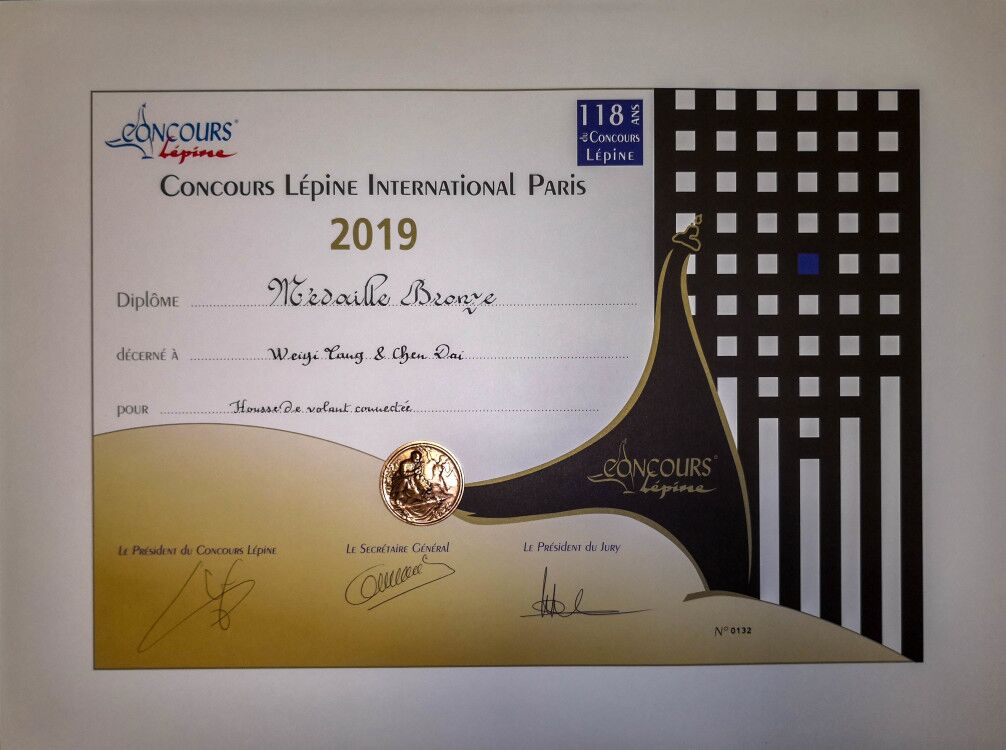 4月25日-5月7日,第118届巴黎国际发明展在法国巴黎举行。长郡芙蓉中学1706班唐唯轶同学、戴辰同学的发明创造“智能方向盘套”喜获铜奖。
