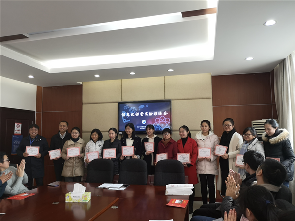 崔主任从微课制作与应用,在线网络课堂,信息化教研,辐射引领等方面总结了上个学期我校信息化工作的探索成果。学校的微课工作室已建成,举办了微课制作培训,开展了第三届微课大赛。在第三届青少年学生法治教育优秀多媒体课件资源征集活动,第三届全国微课大赛中,湖南省中小学教师课件、微课评审中,金慧枝、刘蓉芳、黄缨涵、付茉、聂义忠等老师斩获佳绩。学校在长沙市中小学在线学习中心开通了学校专版,不少老师在假期和周末开设网络直播课程。信息化教研工作成绩突出,崔应忠、李薇璐、于鹏飞等老师的翻转课堂课例获得2018年部级优课,全国基础教育化学新课程实施成果比赛二等奖,第二十二届全国教师教育教学信息化交流三等奖?!独肺⒖慰⒓霸诮萄е杏τ醚芯俊烦晒α⑾钗〖犊翁?,相关研究论文发表或获省级奖项10多篇。在2018年湖南中小学教师信息技术与学科教学课程融合在线集体备课大赛中,我校信息化教研团队斩获三个特等奖,四个二等奖,二个三等奖。同时,学校的信息化工作产生了很强的辐射引领作用,崔应忠老师受邀在2018年湖南省教育学会创客教育中心年会和长沙市首届卓越教师论坛做经验分享。